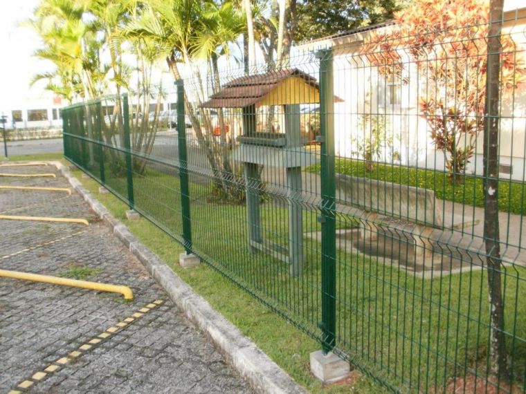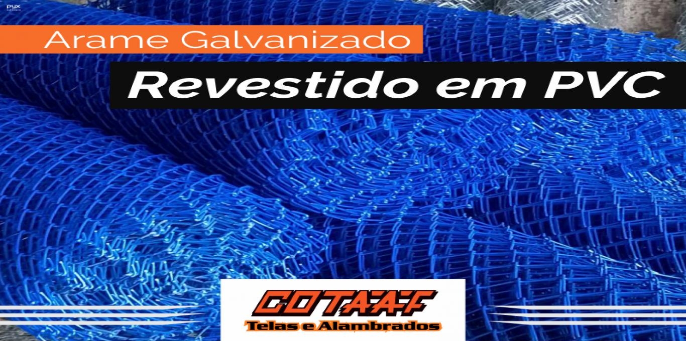 Telas de malha quadrangulares confeccionadas em arames ( especiais, produzidos pelas siderúrgicas) galvanizados e revestidos em PVC – nas cores verde, azul e cinza.